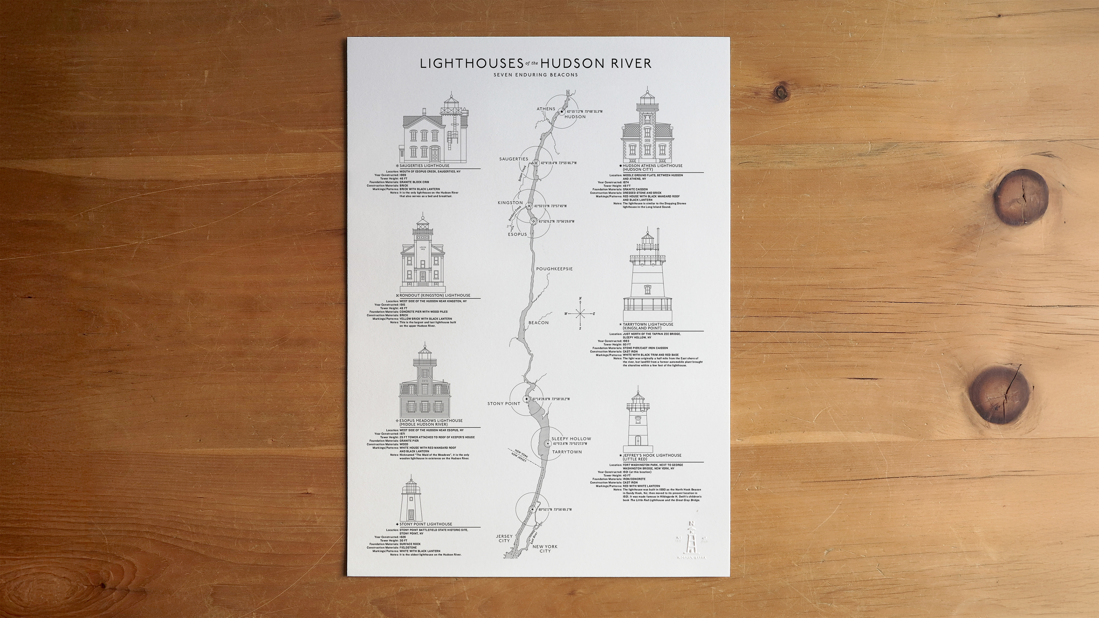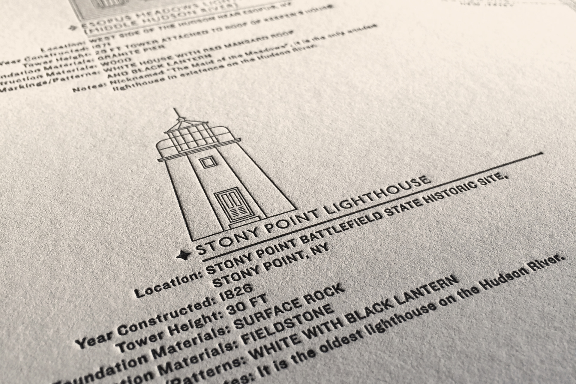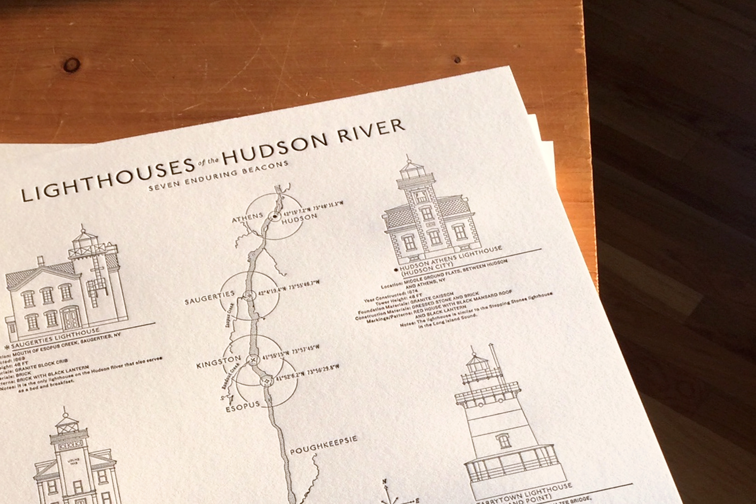 I created Lighthouses of the Hudson River after an overnight stay at Saugerties Lighthouse, a historic landmark that also operates as a Bed & Breakfast. Curious to learn more about the Hudson's maritime history, I set out to track down other lighthouses along the river. The data was gathered with help from the National Park Service Marine Heritage program and the U.S. Coast Guard archives. The project culminated in a limited edition of 500 hand-numbered, poster-sized letterpress prints that quickly sold out.
